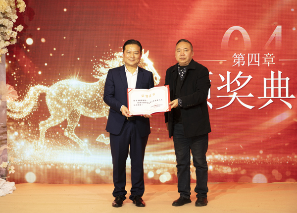 图:民进贵州省委副主委刘大泯为民进贵州省文化出版总支主委龙佑铭颁发“全国民进参政议政先进个人”称号奖章